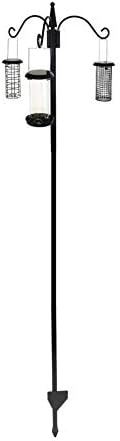 Station à manger triple crochet qui comprend 3 aliments, une mangeoire à graines, une mangeoire à cacahuètes et un distributeur à boules de graisse. Montage simple. Hauteur totale 188 cm, largeur totale 47 cm. Fabriqué avec un joli embout pour améliorer l'apparence de votre jardin. Plaque de stabilité incluse. Tube robuste de 20 mm avec revêtement en poudre.