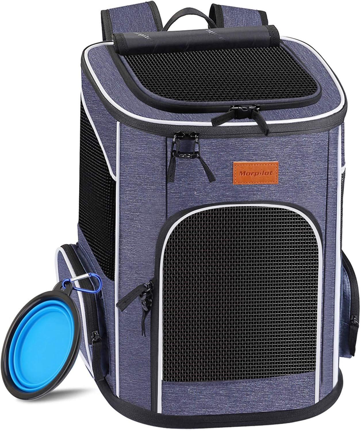 Morpilot Sac à Dos Chat Chien, Sac Transport Chat Chien Respirant et Pliable pour Petits Chats et Chiens Chiot, Sac à Dos de Transport Chat avec Sangle de Sécurité Intérieure (13*11*16.5 inch) + Bol