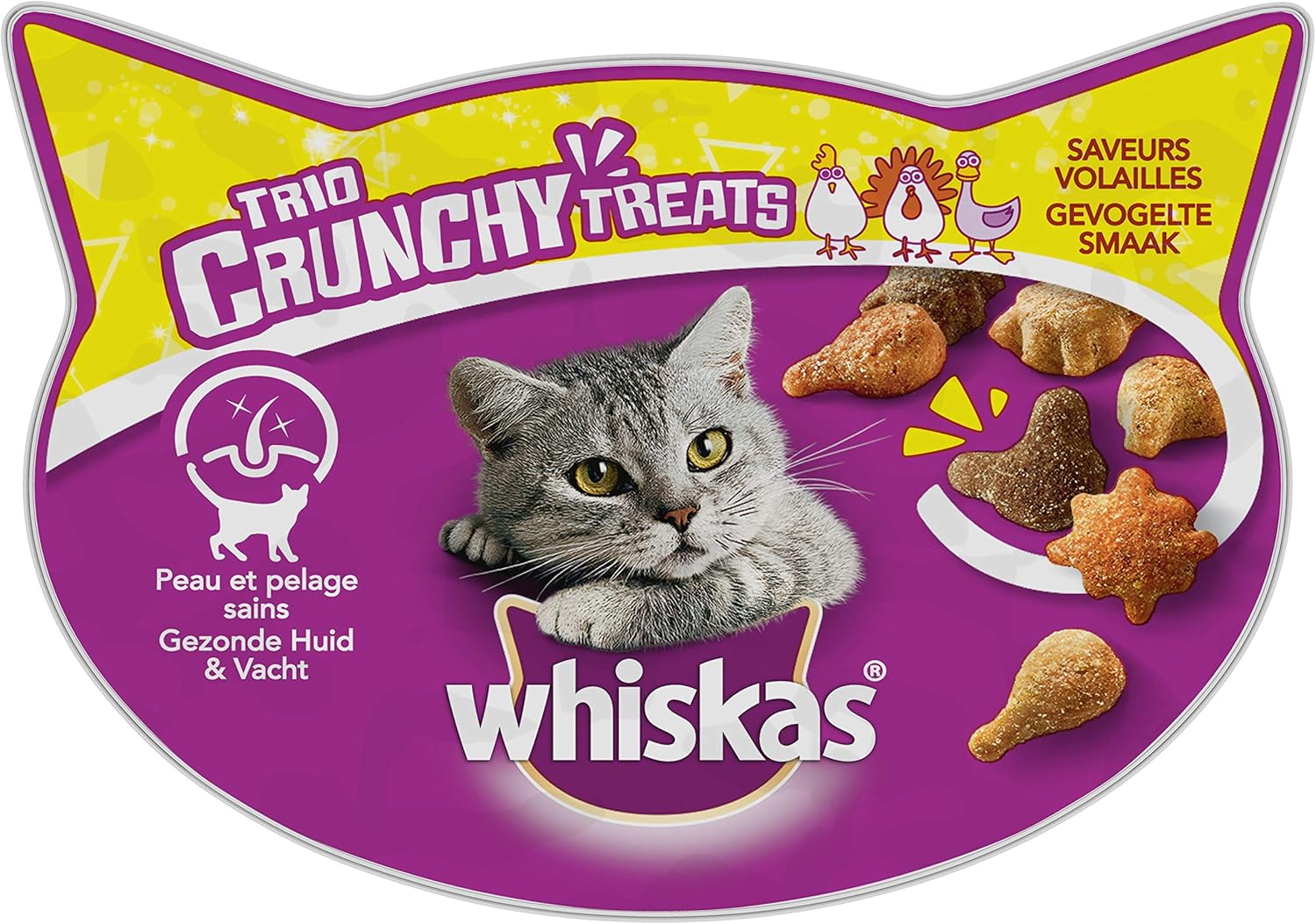 Les Friandises Trio Crunchy Treats de WHISKAS ont été développées par nos nutritionnistes et vétérinaires du Centre de nutrition WALTHAM pour animaux de compagnie. Les Friandises WHISKAS Trio Crunchy sont des croquettes délicieusement croustillantes disponibles dans différentes variétés de volaille, de fruits de mer ou de grillades mixtes qui participent à une peau et un pelage sains. Votre chat adorera les friandises WHISKAS Trio Crunchy car elles offrent un mélange de délicieuses saveurs, de formes amusantes et de couleurs excitantes. Offrez à votre chat plus de variétés avec des friandises croustillantes alléchantes, équilibrées et qui ont aussi bon goût.