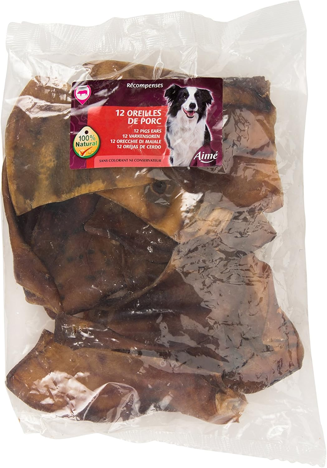 AIME Oreille de Porc pour Chien, X12, Sans conservateur ni colorant, Friandise à mâcher 100% naturelle