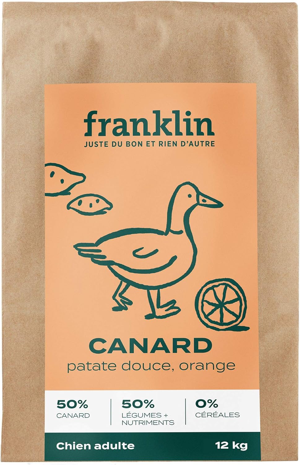 - Croquettes sans Céréales - Chien Adulte - 100% Naturel - Allergies Alimentaires – Digestion Parfaite - Canard, Patate Douce, Orange - 12kg