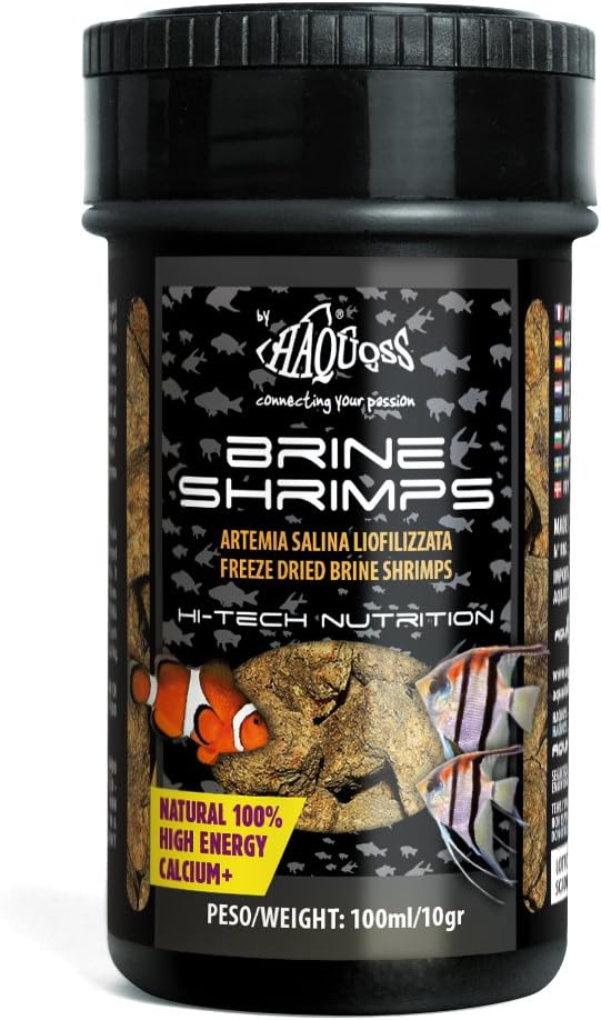 Haquoss Brine Shrimps Aliment Naturel lyophilisat en Artemia Salina pour Poissons tropicaux d'eau Douce et Marine, 100 ml/10 GR