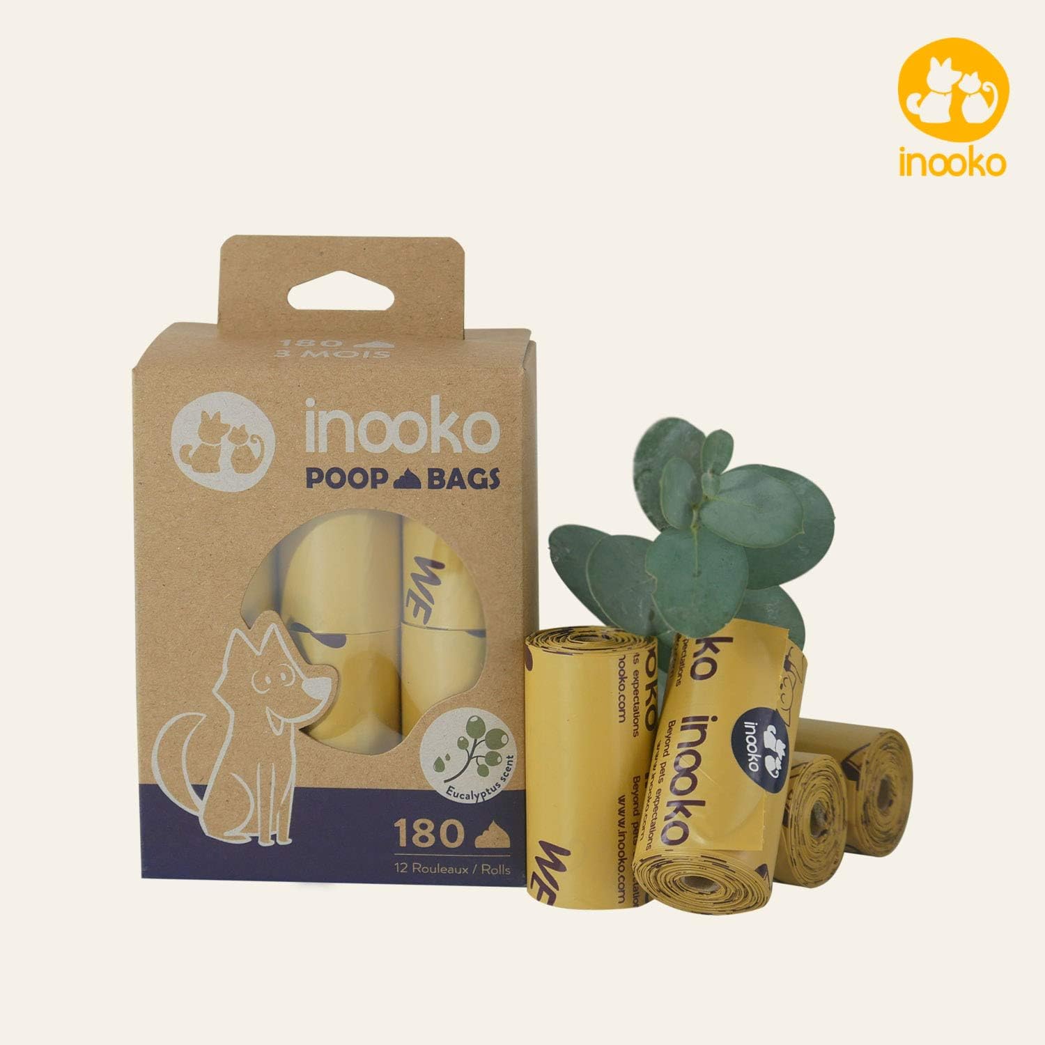 inooko - 180 Sacs a Crottes pour Chien, Grand, Ultra Résistant, Biodégradables et Parfumés à l'Eucalyptus, 12 Rouleaux (Soit 180 Sacs)