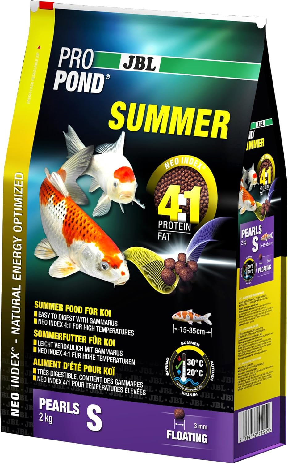 Contenu: 1 x JBL 2,0 kg, ProPond Summer, Nourriture Eté pour Koïs, Granules Alimentaires Flottants, 4122400, Taille: S, Refermable, Contenant résistant à l'eau et à l'air