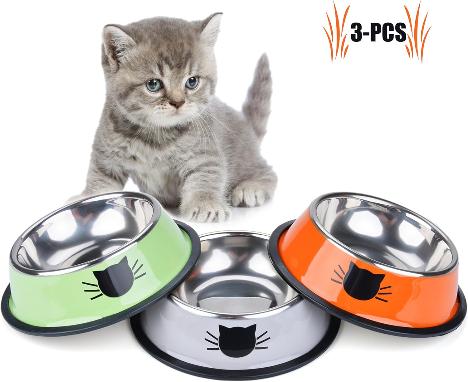 Legendog Bol Chats, 3 Pcs Bols de Chat Imprimé, Chat en Acier Inoxydable Antidérapant Canin Chat, Bol de Nourriture pour Chats Chat … (Multicolore)