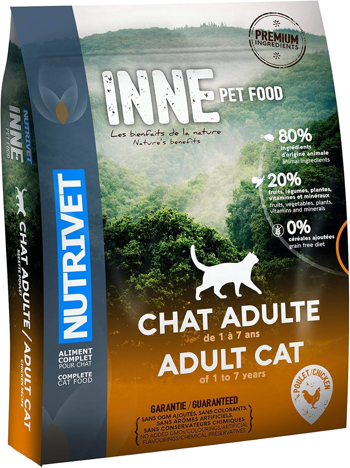 INNE PET FOOD CHAT ADULTE POULET est une recette riche en protéines animales pour un meilleur développement de l'organisme et répondre aux besoins nutritionnels de l'animal.