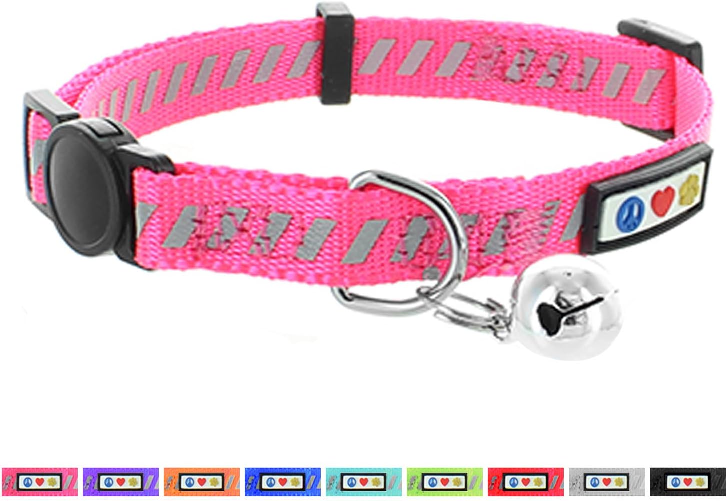 PAWTITAS Collier réfléchissant pour Chat Traffic avec Boucle de sécurité et grelot Amovible Collier pour Chat Collier pour Chaton Rose Collier pour Chat