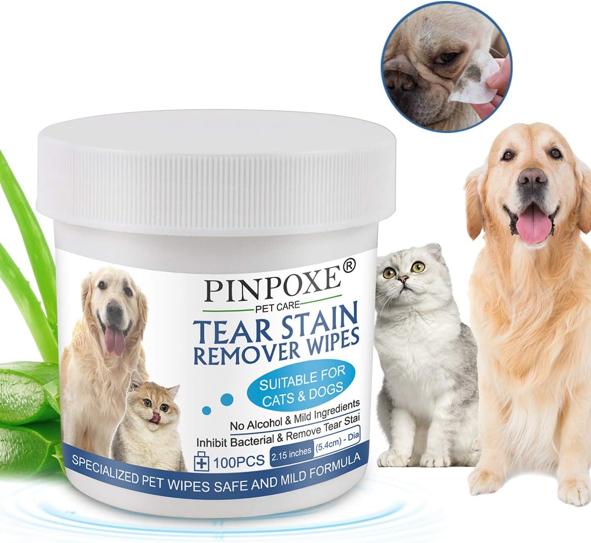 PINPOXE Lingettes pour Animaux de Compagnie, Lingettes de toilettage, Lingettes nettoyantes, Pet Wipes, Lingettes Chiens Chats, Extraits Aloe, 100 Pieces