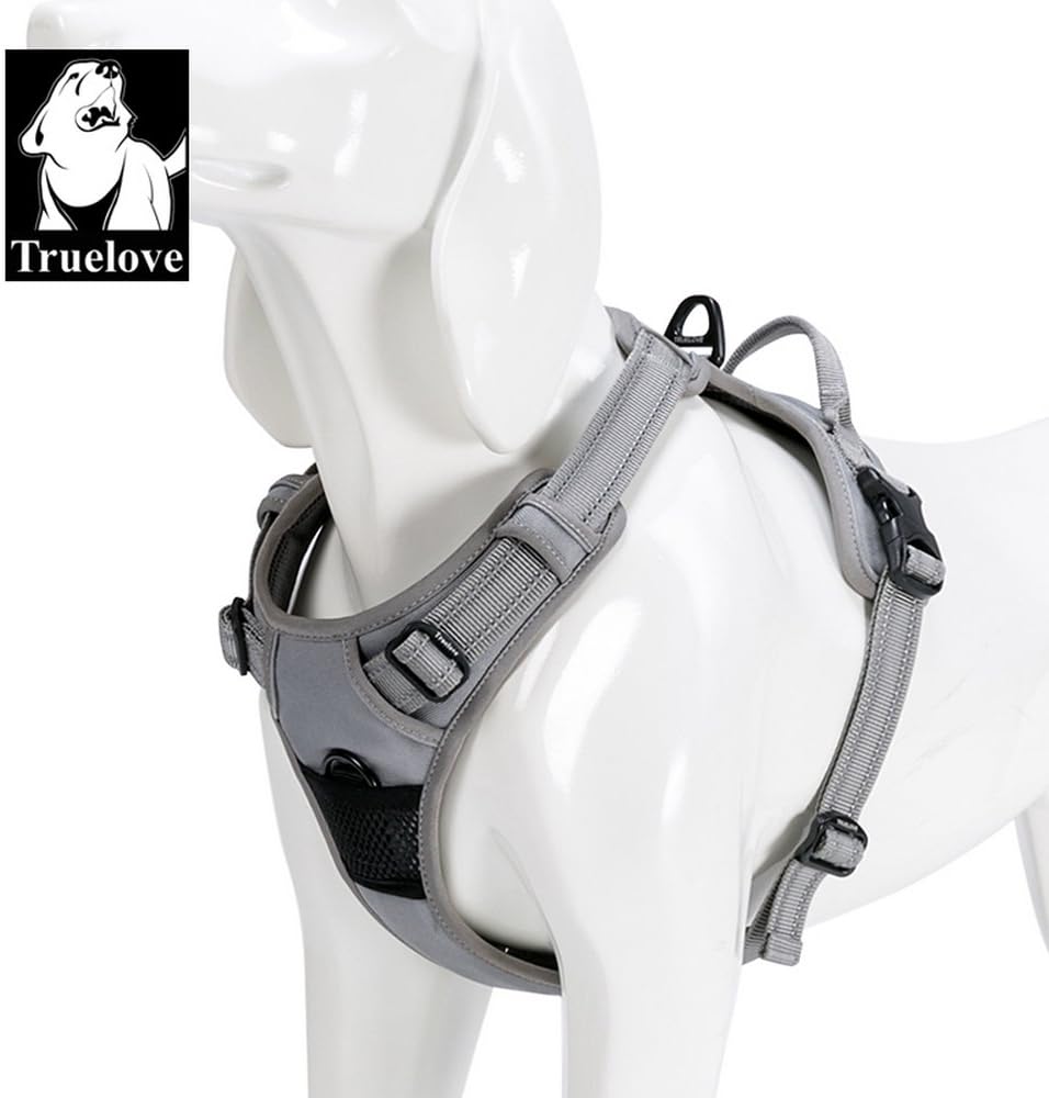 TRUE LOVE Réfléchissant Harnais De Chien Réglable Décourager Tirer Pet Gilet Durable en Nylon De Voiture TLH5651 (Gris, L)