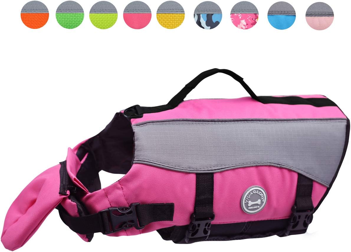 VIVAGLORY Réglable Réfléchissante Gilet de Sauvetage pour Chien Gilet de Sauvetage pour Chiens avec Flotteur Frontal Amovible, Rose, S