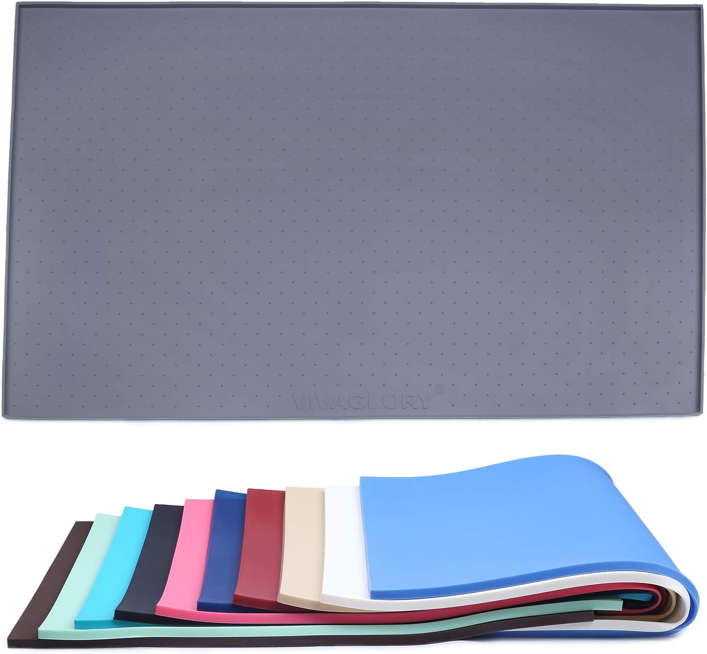 VIVAGLORY Tapis Gamelle Chien et Chat, Tapis d’Alimentation Imperméable Silicone aux Normes FDA, Grand 60x40cm Tapis Antiderapant Dessous Gamelles pour Animaux, Gris
